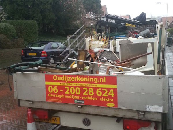 Ook spullen waar ijzer in verwerkt is halen we bij u op. ( Bij voorbeeld: geplastificeerd metaal of metaal met 'n weinig plastic enz..)
